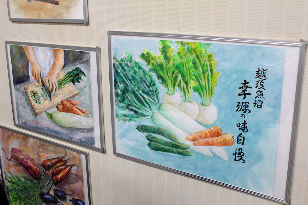 1977(昭和52)年、幸源は「ふるさとの味を食卓に」を掲げて創業した。製品の8割を占めるのが野沢菜漬け、そしてこの野沢菜を刻んで野菜と合わせたのが「魚沼の切り菜(きりざい)」だ。10年ほど前「野沢菜が食べられなくなった」、そんなお年寄りの声をきっかけに生まれたという。「きりざいであれば、魚沼の家庭の味を伝えることにもなる」。初代の思いを込めた製品は今、地元の画家が描く魚沼の風景が彩りを添えている。