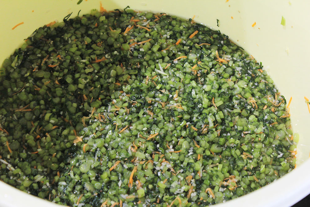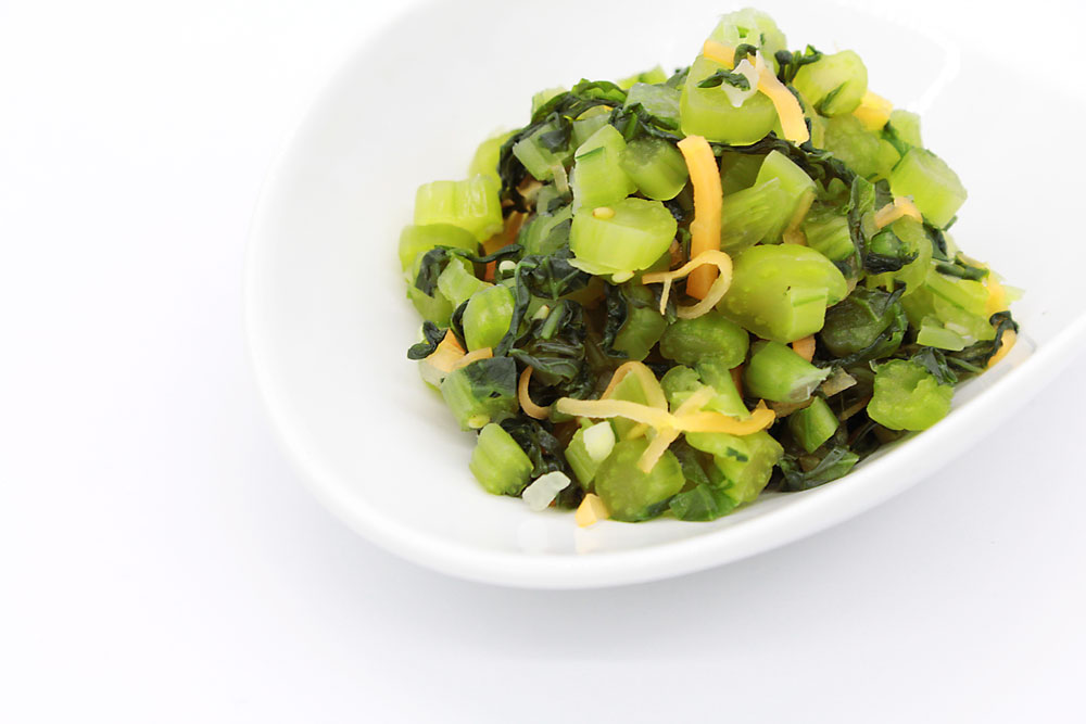 細かく刻んだ野沢菜を中心に
